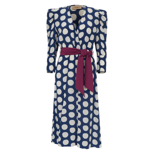 Vestido Adriana Degreas Poá Azul Marinho Tam. M Br