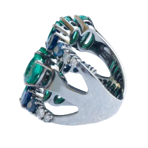 Anel Amsterdam Sauer Com Esmeraldas, Safira e Diamantes