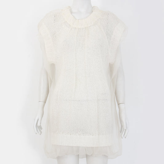 Vestido Dolce & Gabbana Off White e Crochê com Tule Tam. 36