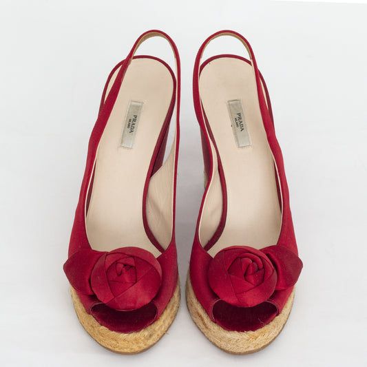 Sandália Prada Cetim Vermelho Plataforma Tam. 39