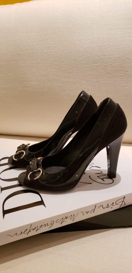 Sapato Gucci Peep Toe Verniz e Suede preto Tam. 39,5 c
