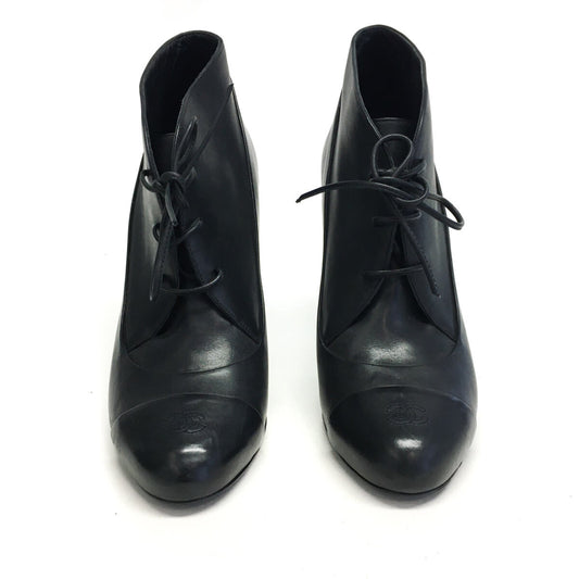 Bota Chanel Ankle Boot Preta Couro Tam. 38,5