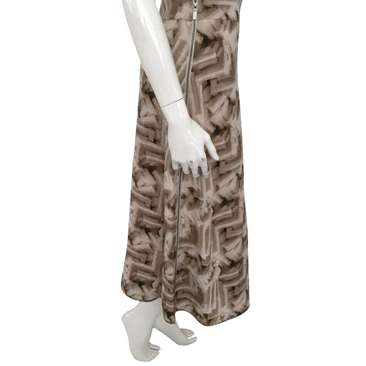 Saia Paula Raia Bege Estampada Longa Tam. 36