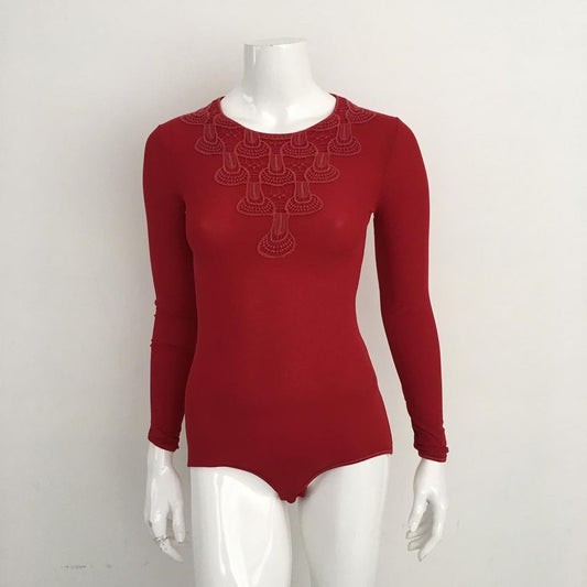Body Paula Raia Vermelho Com Renda Tam. M