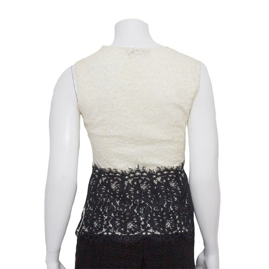 Blusa Carolina Herrera de Renda Branca e Preta Tam. 38 Br