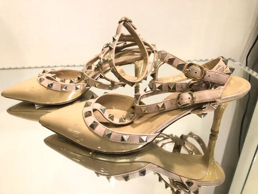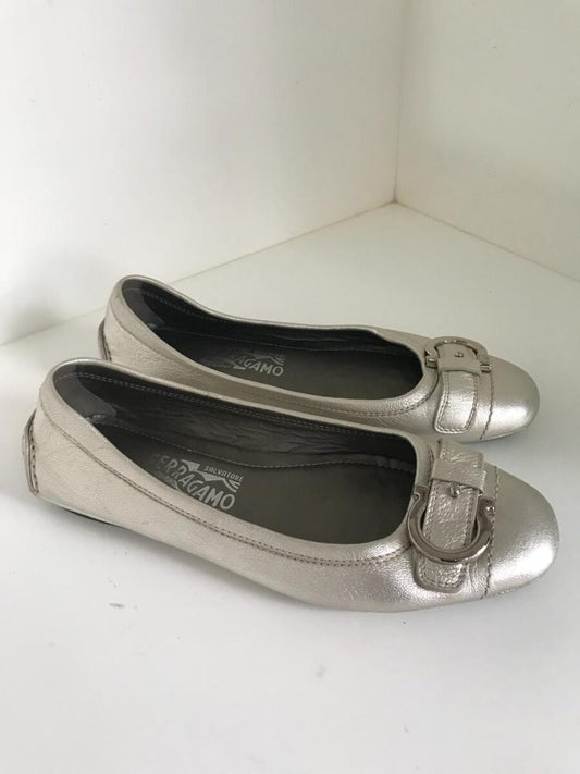 Sapatilha Ferragamo bege verniz, sola 37.5