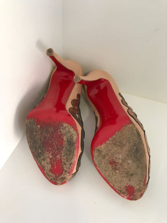 Sapato Louboutin nude laço sola 39