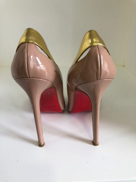 Sapato Louboutin bege com dourado, sola 40