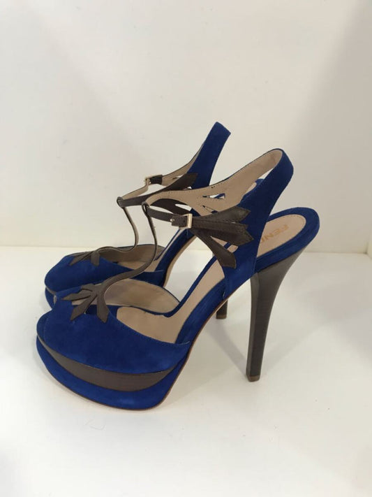 Sandalia Fendi azul com marrom, sola 38.5