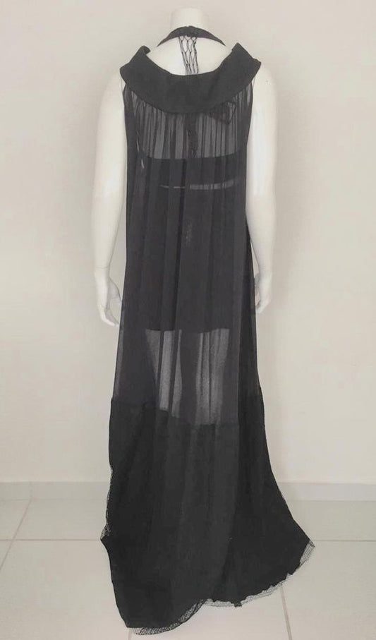 Vestido Paula Raia Preto Macramê e Bordados Tam. 38