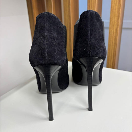 Saint Laurent Suede Point Toe Ankle Boot preto TAM. 34 BR