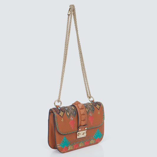 Bolsa Valentino Glam Lock Bordada Marrom