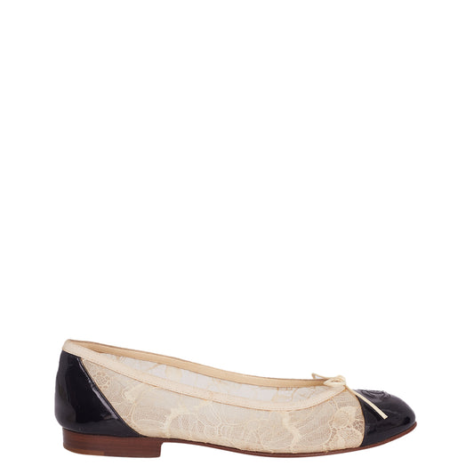 Sapatilha Chanel de Renda Branca e Preta Tam. 36 Br