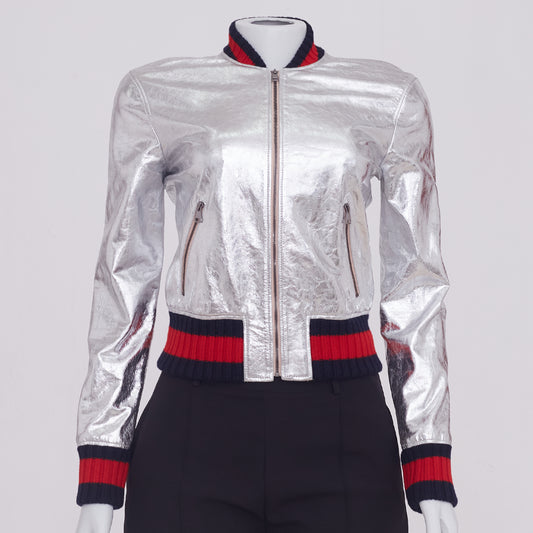Jaqueta Gucci Couro Prateado Tam. 38
