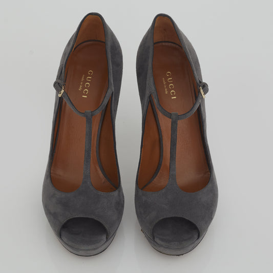 Peep Toe Gucci Camurça Cinza Tam. 38,5