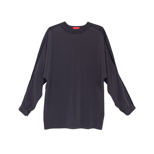 Blusa Lanvin Cinza c/ Detalhes Pretos e Recortes Tam.38