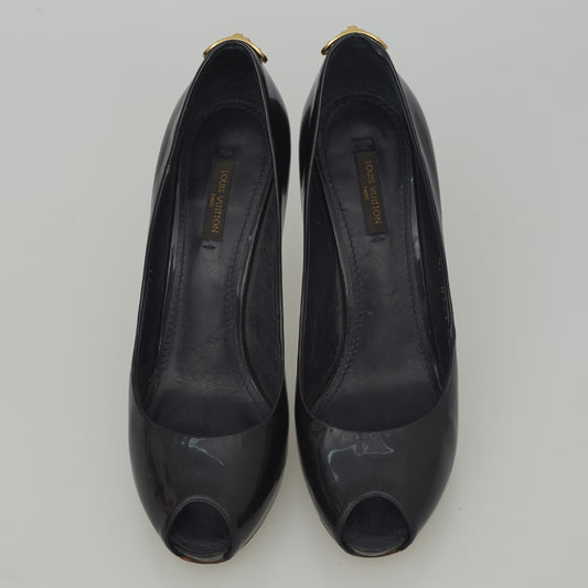 Peep Toe Louis Vuitton Cadeado Preto Tam. 37,5