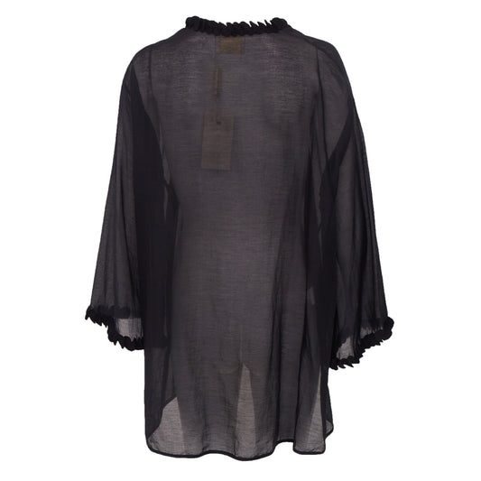 Blusa Paula Raia Mullet Preta c/ Aplicação nas Mangas e Gola Tam.36