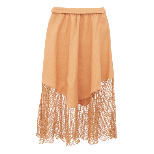 Saia Paula Raia Marrom Claro com barra em crochê tam.36
