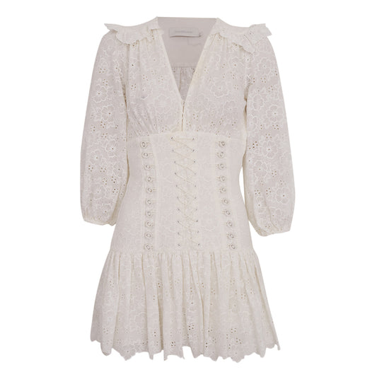 Vestido Zimmermann Branco Bordado com Amarrações Tam. 36 Br