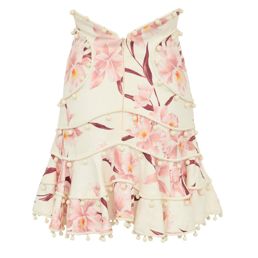 Saia Zimmermann Branca com flores rosas e Pompom Tam. P