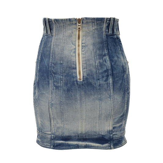 Saia Balmain Jeans Lavagem Escura Tam. 34