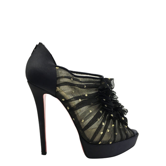 Sapato Louboutin Ankle Boot Preto Tule Tam. 40