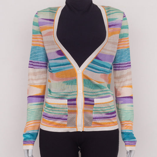 Cardigan Missoni Listrado Colorido c/ bolsos Tam.42 It