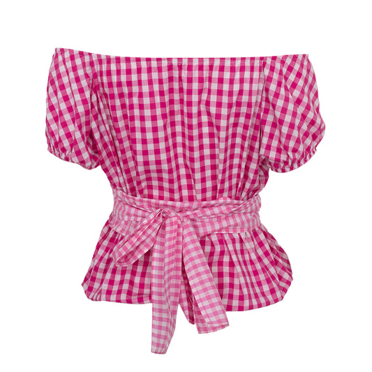 Blusa Ciganinha Ombro a Ombro Vichy Rosa Tam P