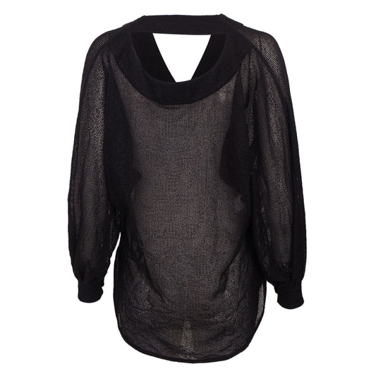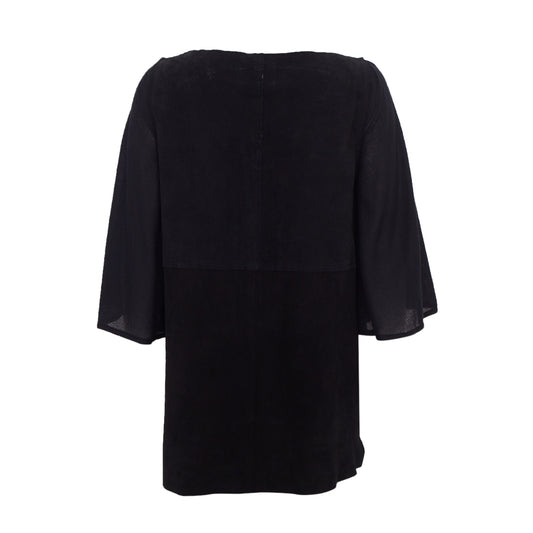 Blusa Paula Raia Preta Mullet c/ Detalhe em Couro Tam.36