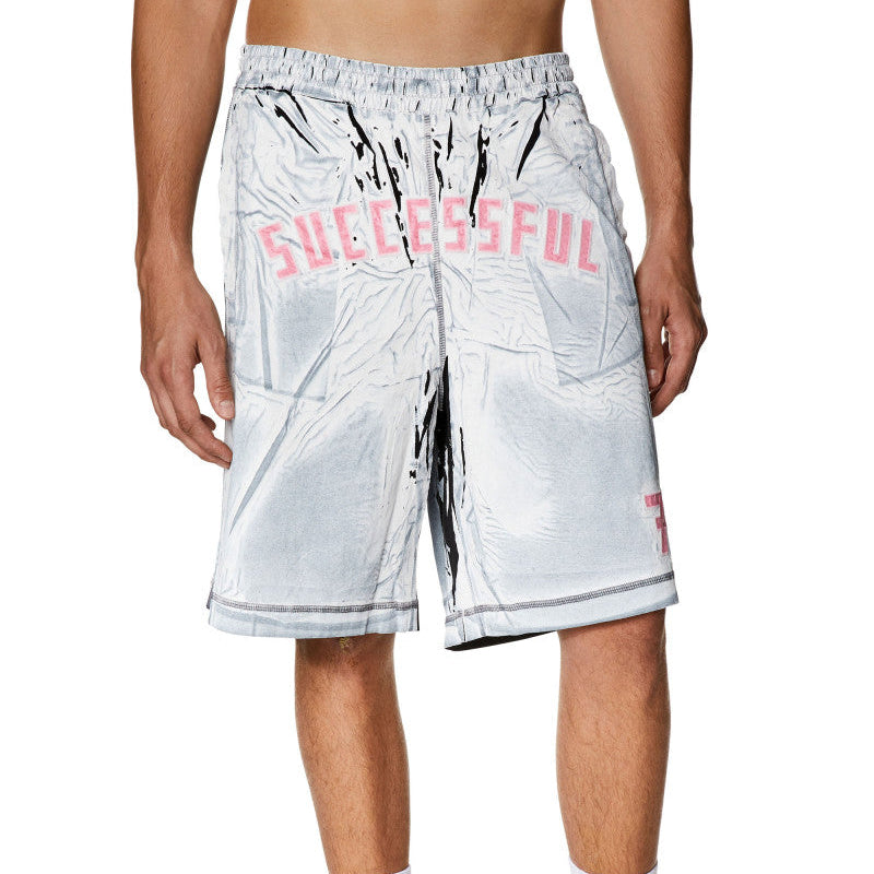 Detalhes: Bermuda Diesel confeccionada em algodão, estampada com cinza, amarelo e preto. Modelo possui dois bolsos frontais, elastico na cintura. Detalhe em escritas.