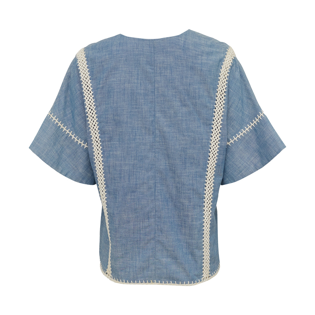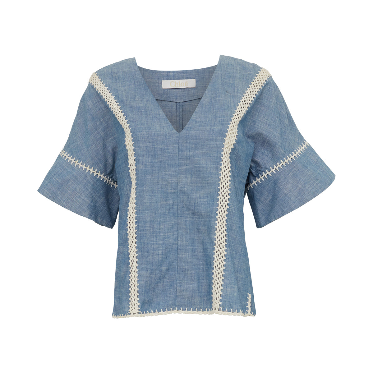 Detalhes: Blusa Chloé Azul Tam. 38, modelo com decote em V, e detalhes nas mangas e barra.