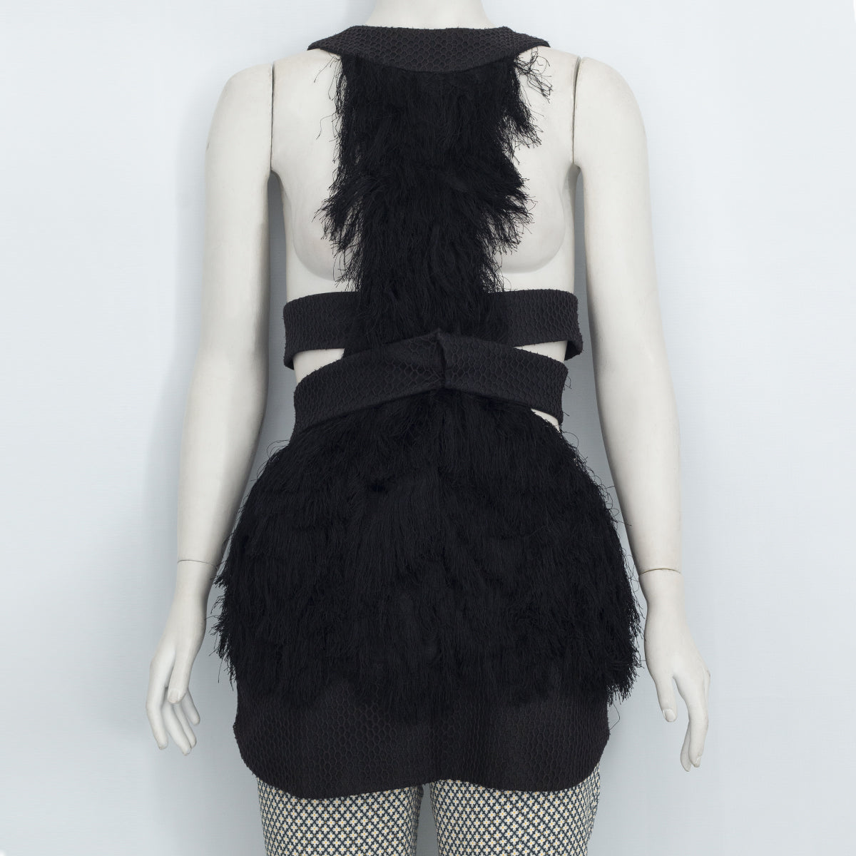 Detalhes: O modelo possui mangas regatas, detalhes de franjas e tiras nas laterais com fechos por colchetes.