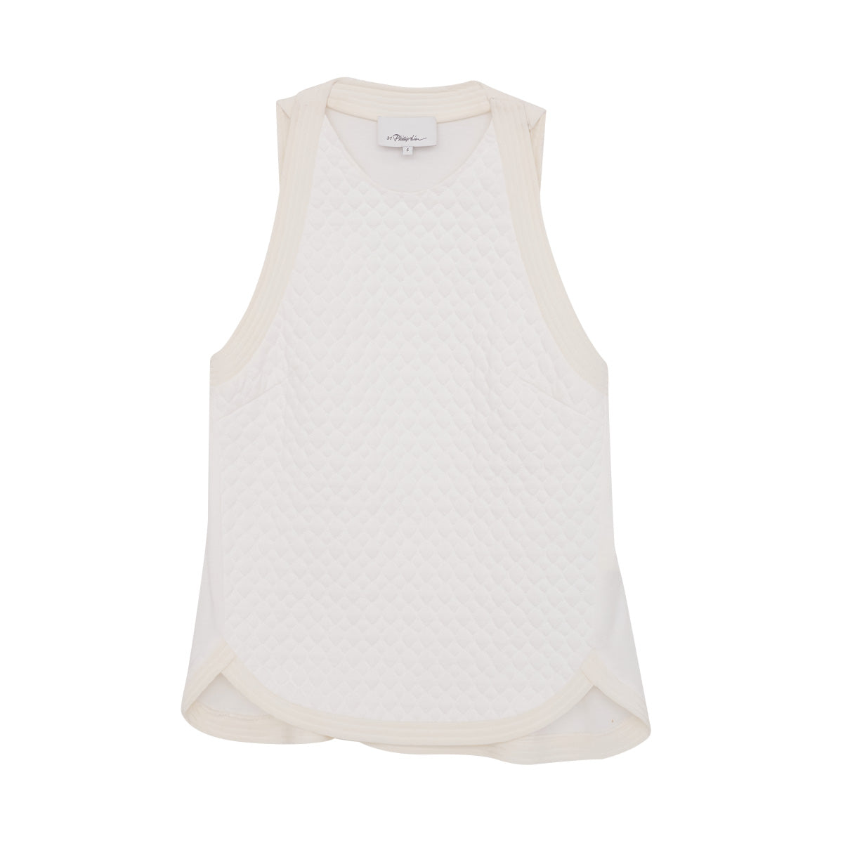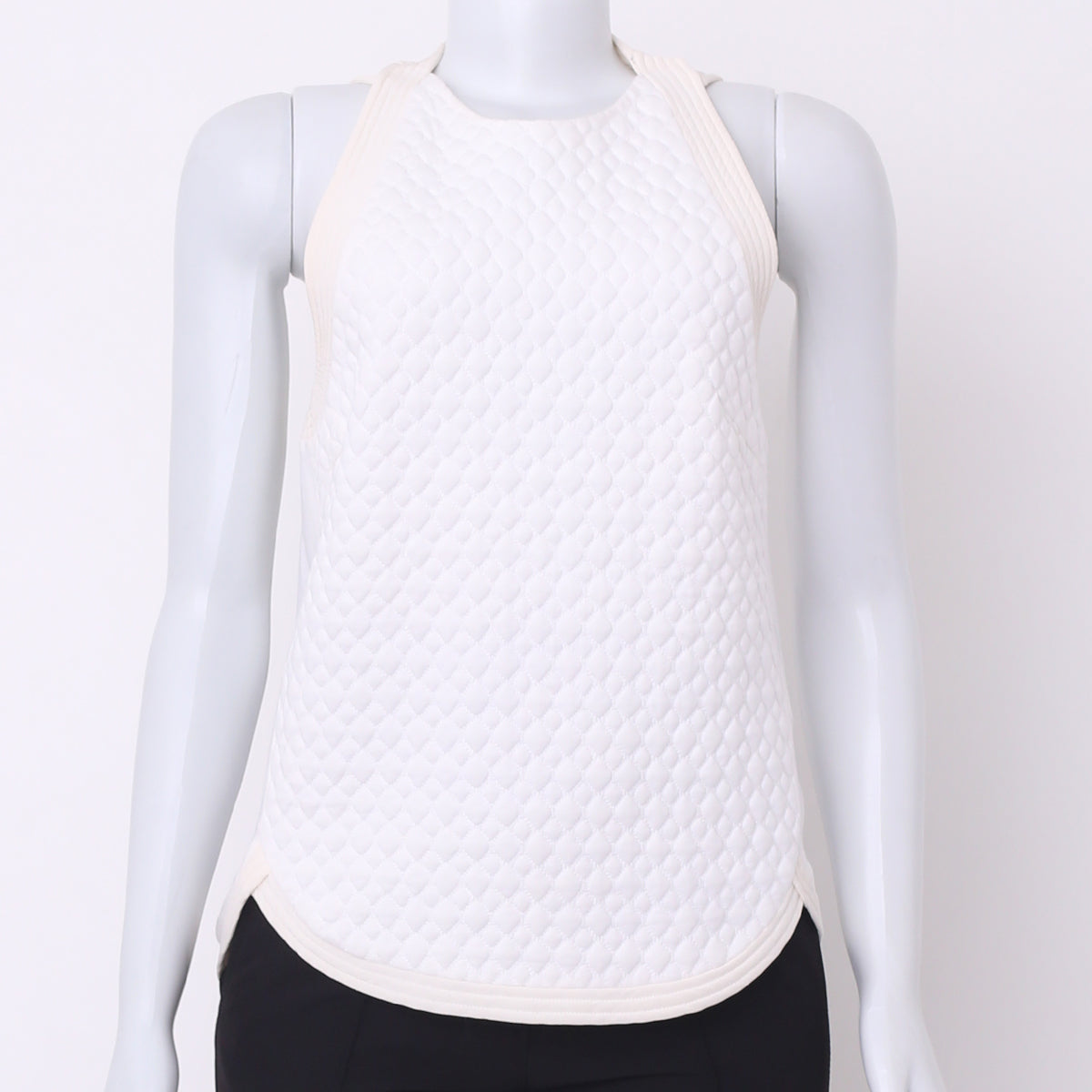 Detalhes: Blusa Phillip Lim branca tamanho S. O modelo não possui mangas e um corte mais reto, também tratasse de uma peça texturizada com efeito acolchoado.
