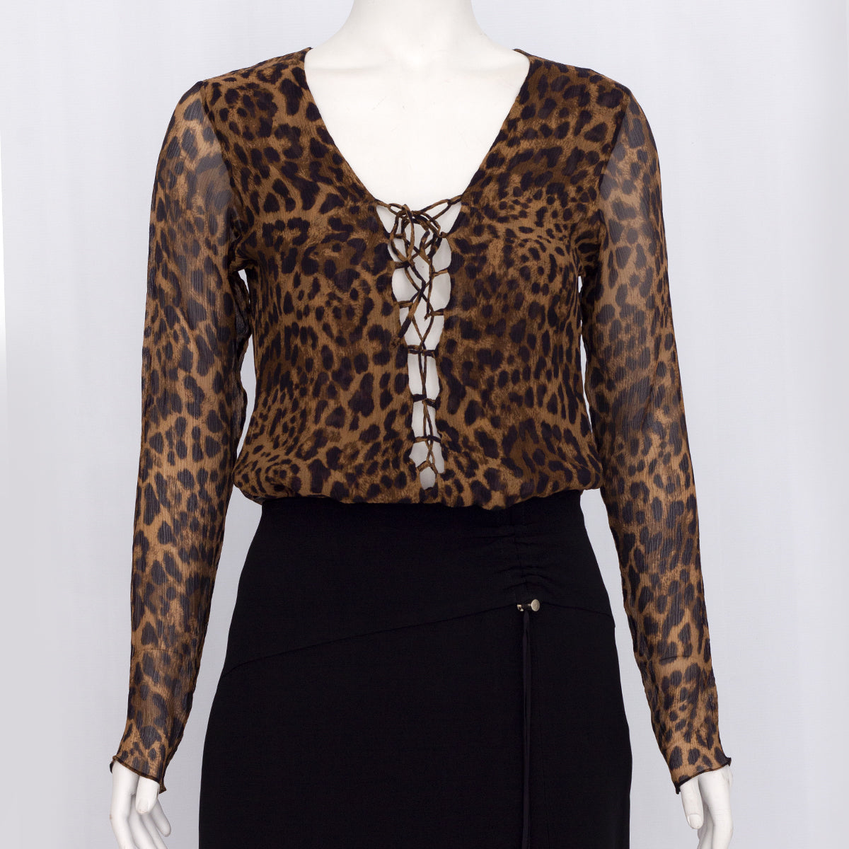 Detalhes: Body Adriana Degreas Animal Print Tam. P/S. Body de manga longa com amarração.