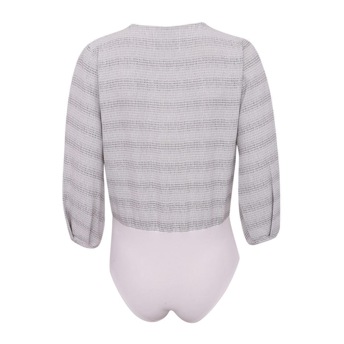 Detalhes: Modelo com tecido texturizado na cor preta e branca. Possui mangas longas e decote V.