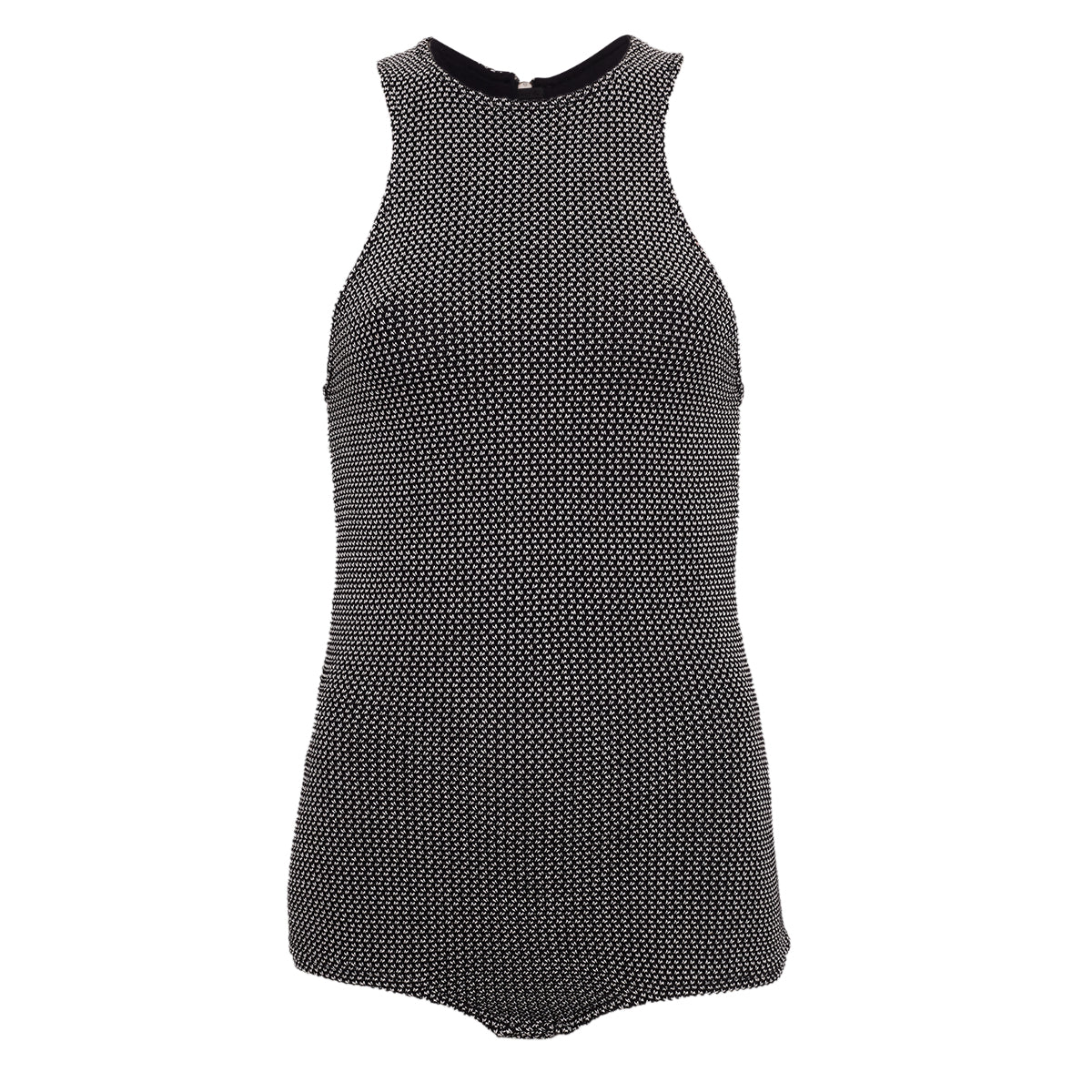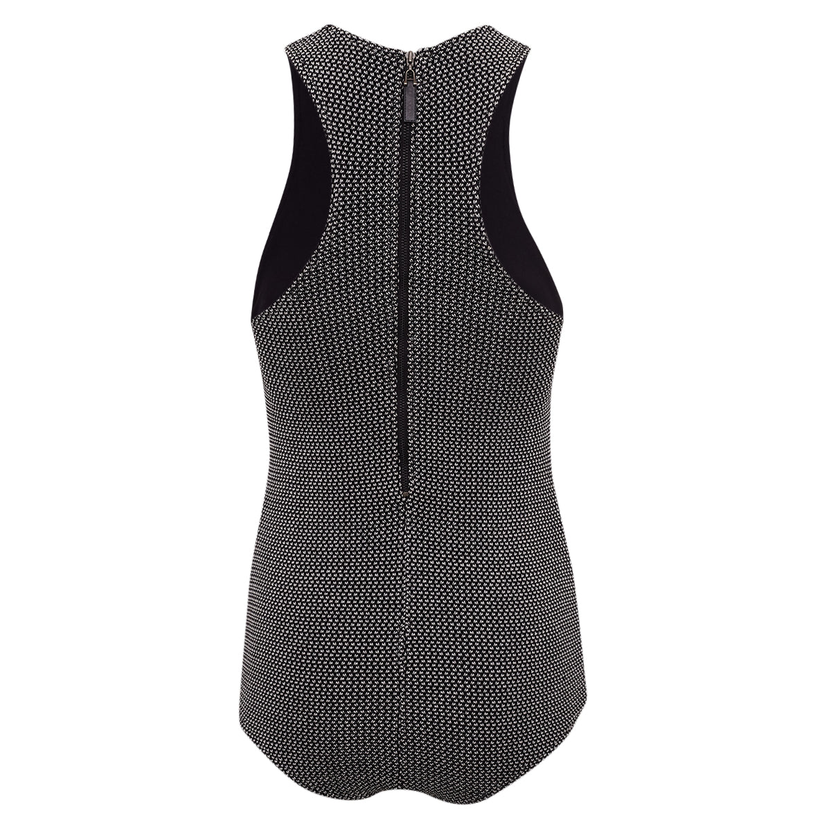 Detalhes: Body Paula Raia confeccionado em viscose na cor branca e preta sem mangas e com decote nadador. Possui forro preto e fechamento em ziper aplicado na parte de trás da peça.