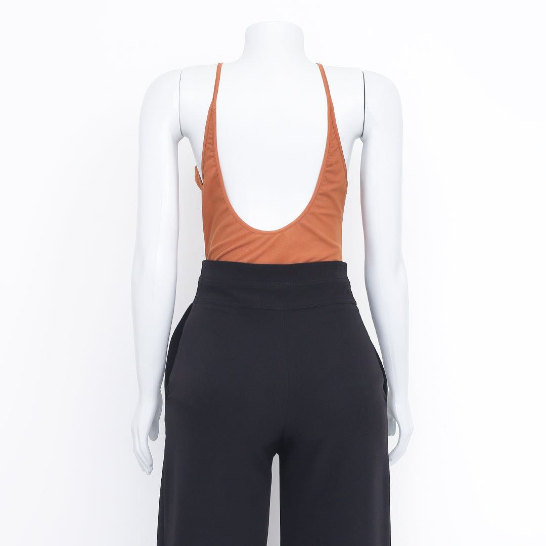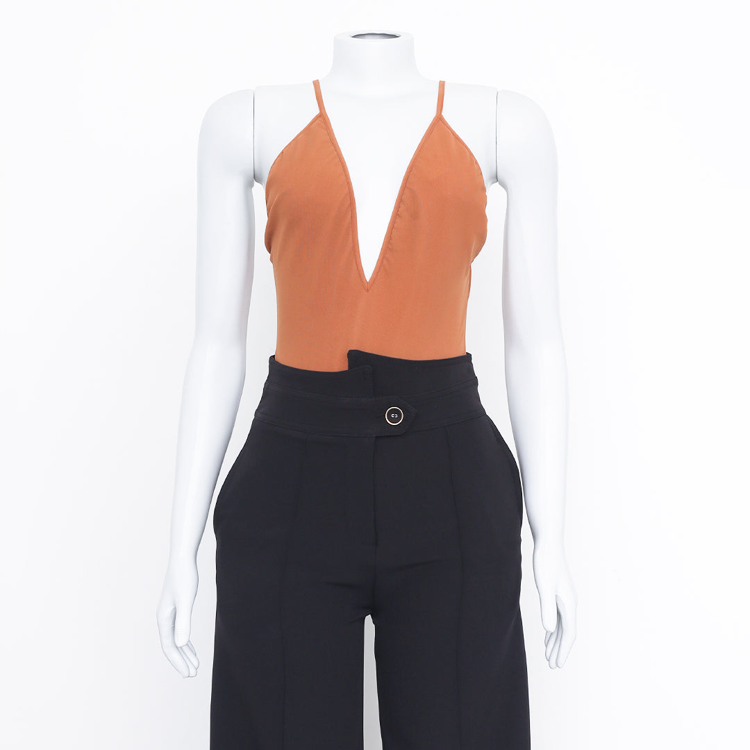 Detalhes: Body Paula Raia na cor caramelo. Possui decote v frontal e costas com decote redondo cavado. Alças finas e fechamento por encaixe localizado na hotpants.