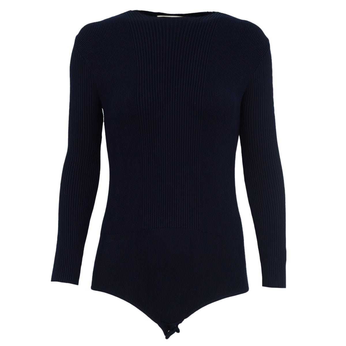 Detalhes: Body Paula Raia confeccionado em tricot na cor azul marinho canelado. Possui mangas longas e decote arredondado. Fecho por colchetes na calcinha