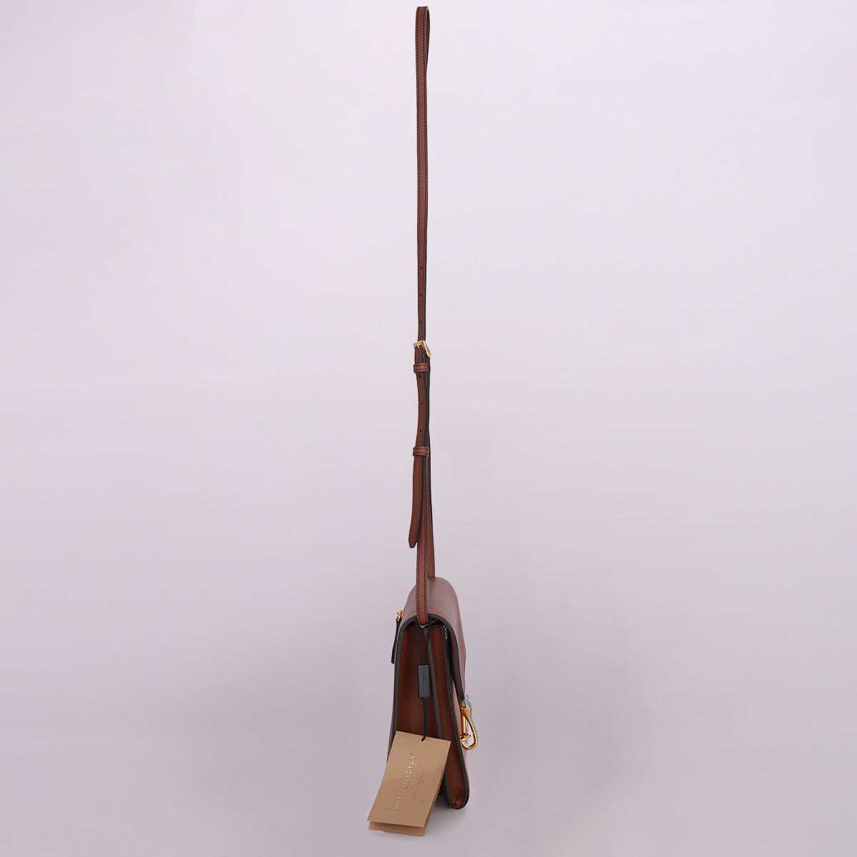 Detalhes: Bolsa Burberry confeccionada em couro na cor marrom. Modelo possui formato quadrado, alça de ombro regulável,bolso frontal em tecido com estampa padrão, logo gravado no fecho e bolso externo posterior com zíper. Parte interna em tecido preto, conta com um compartimento e um bolso. Ferragens douradas. Fechamento em mosquetão.