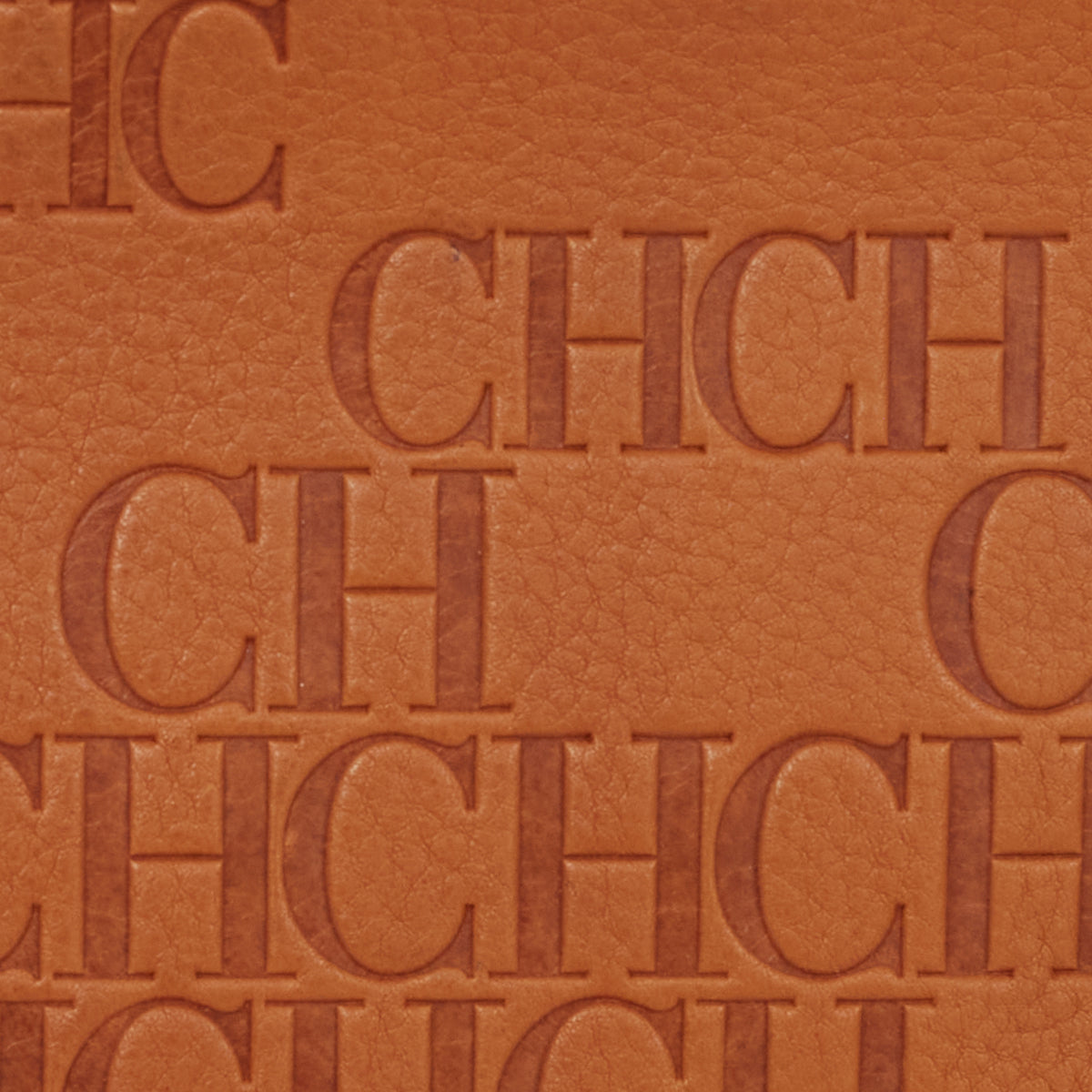 Detalhes: Bolsa Carolina Herrera Castanuela Reversible Caramelo, confeccionado em couro na cor marrom. Modelo possui padronagem monogramada em CH, alça de ombro ajustável por regulador e removível por mosquetão, além de uma alça extra em couro.