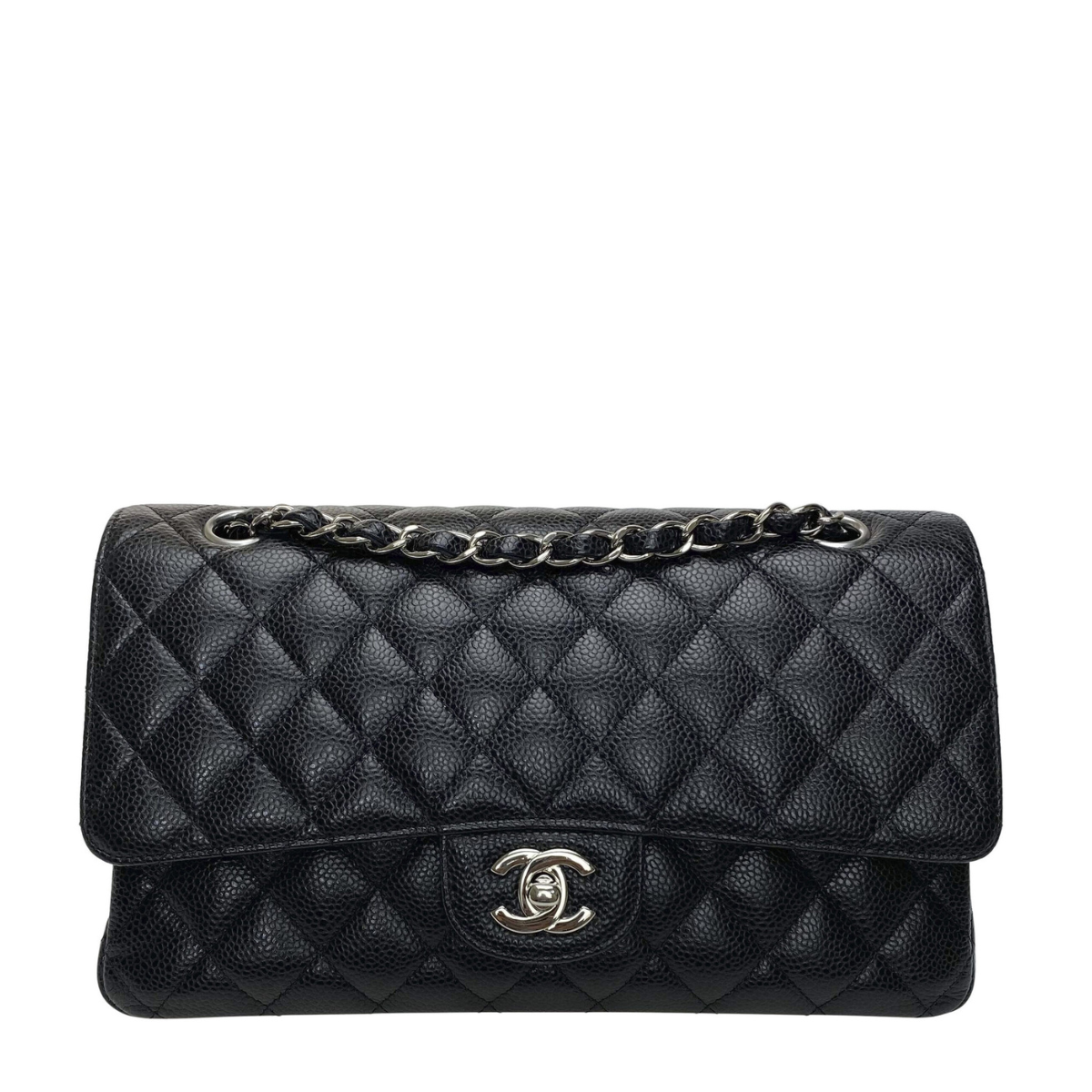 Detalhes: Modelo confeccionado em couro caviar na cor preto. Em tamanho grande conta com ferragens prateadas, duas flaps, CC frontal e alça dupla em corrente e couro. Contém compartimento externo posterior e dois compartimentos internos. Fecho por encaixe giratório. *Acompanha dustbag da marca*