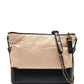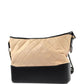 Detalhes: Bolsa Chanel Gabrielle em couro bege e preto. Possui acabamento matelassê em padrão chevron, combinando texturas lisas e acolchoadas. A bolsa conta com uma alça ajustável de corrente entrelaçada em couro, permitindo diferentes formas de uso. O charme fica por conta do detalhe metálico com o icônico logo "CC" da marca em dourado. Esse design estruturado e elegante reflete a identidade atemporal da Chanel, sendo uma peça versátil para diversas ocasiões. *Acompanha dustbag da marca*