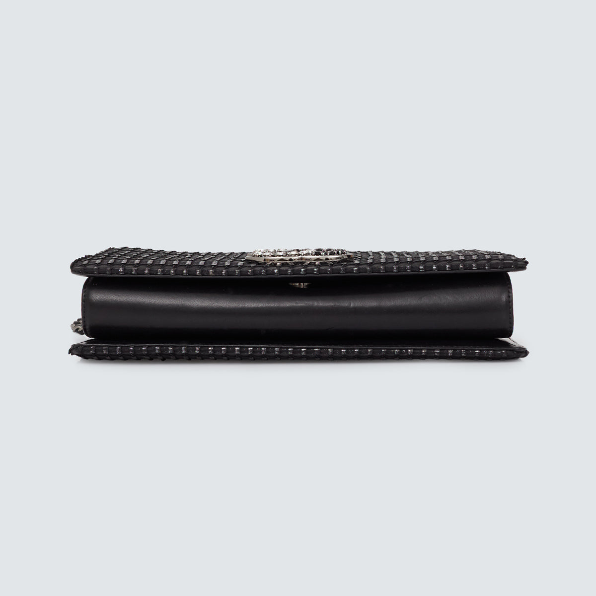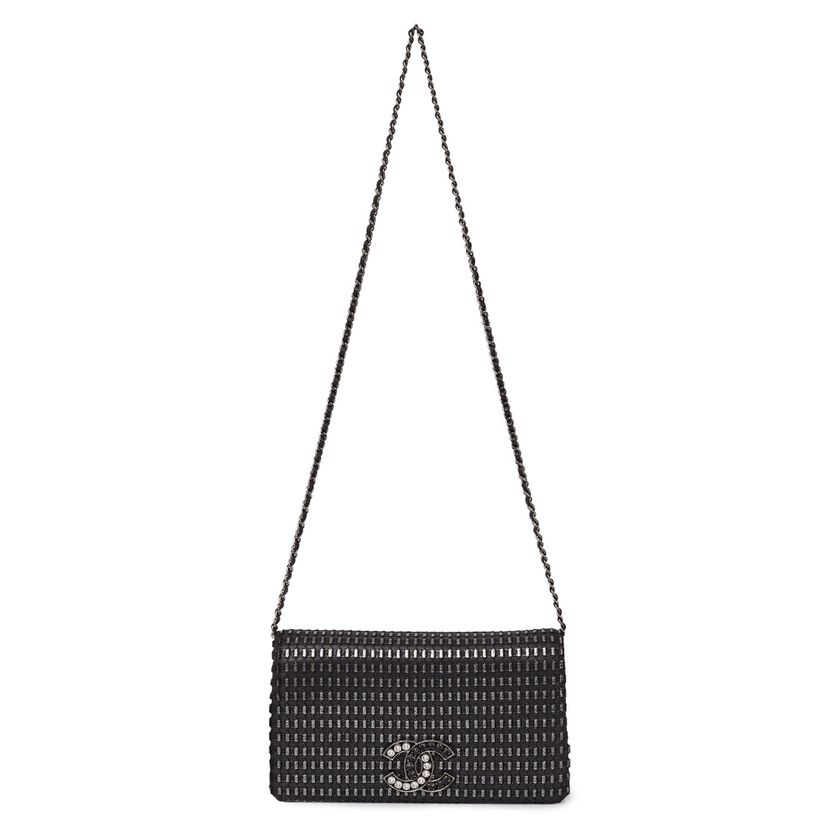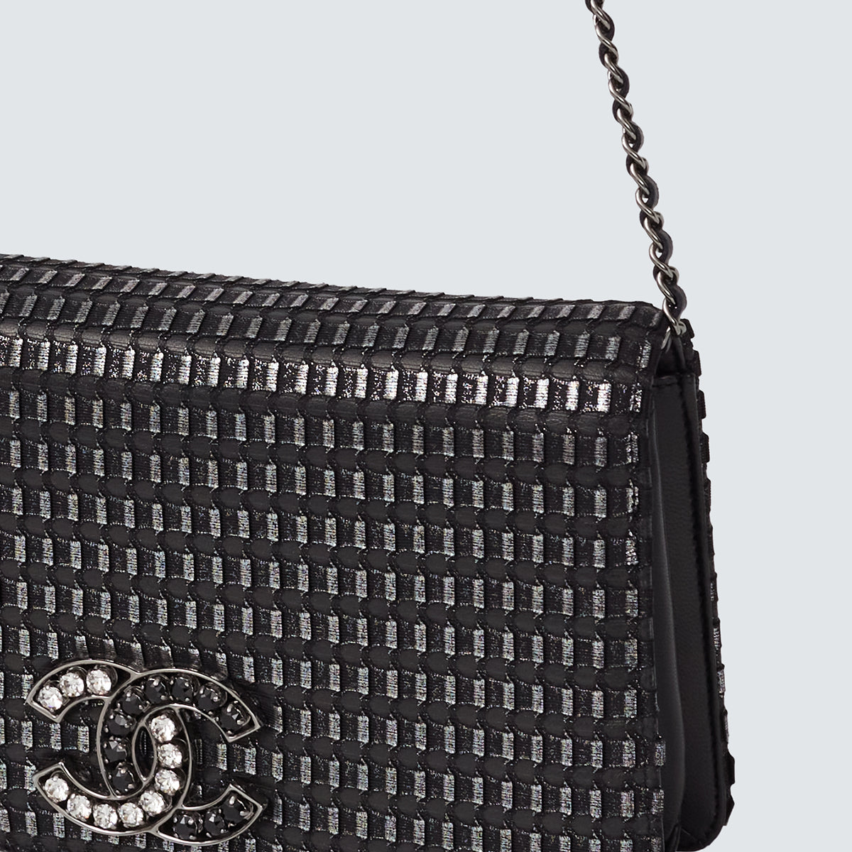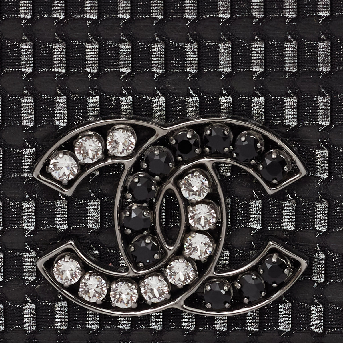 Bolsa Chanel Preta com Prata e Cc Brilhantes