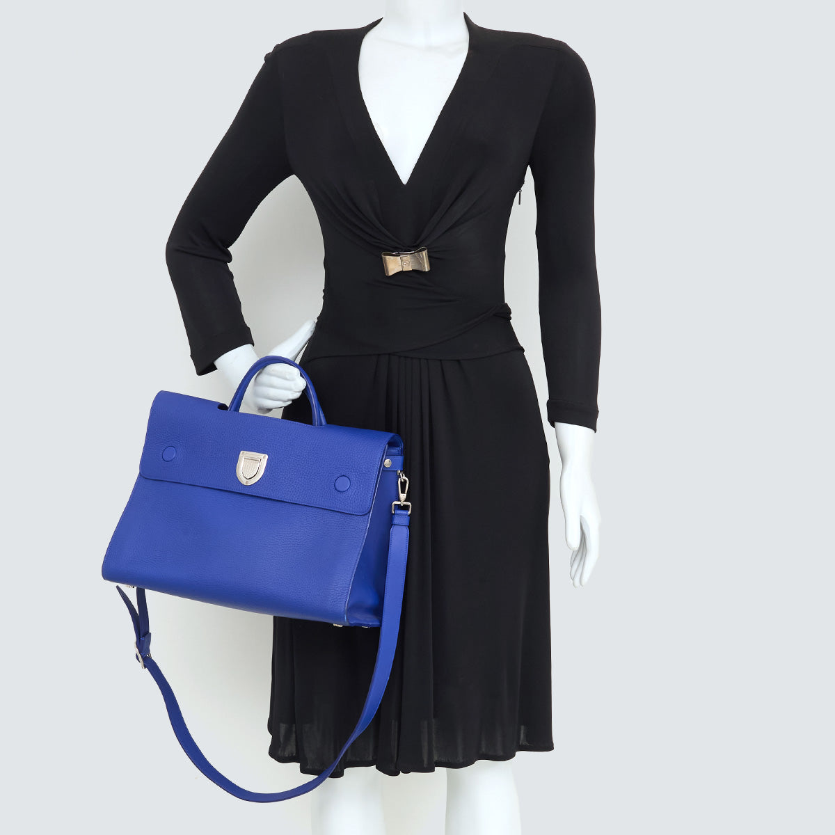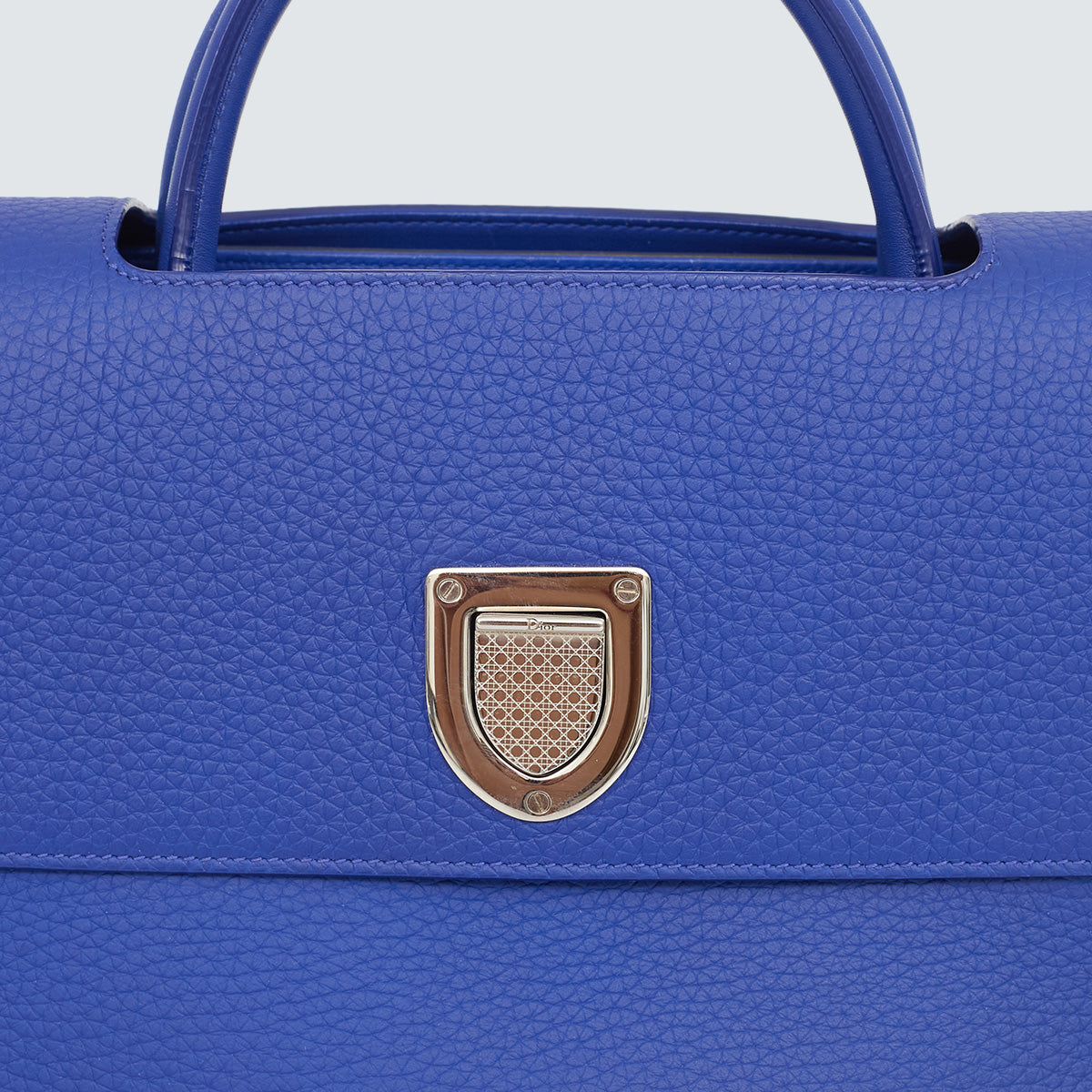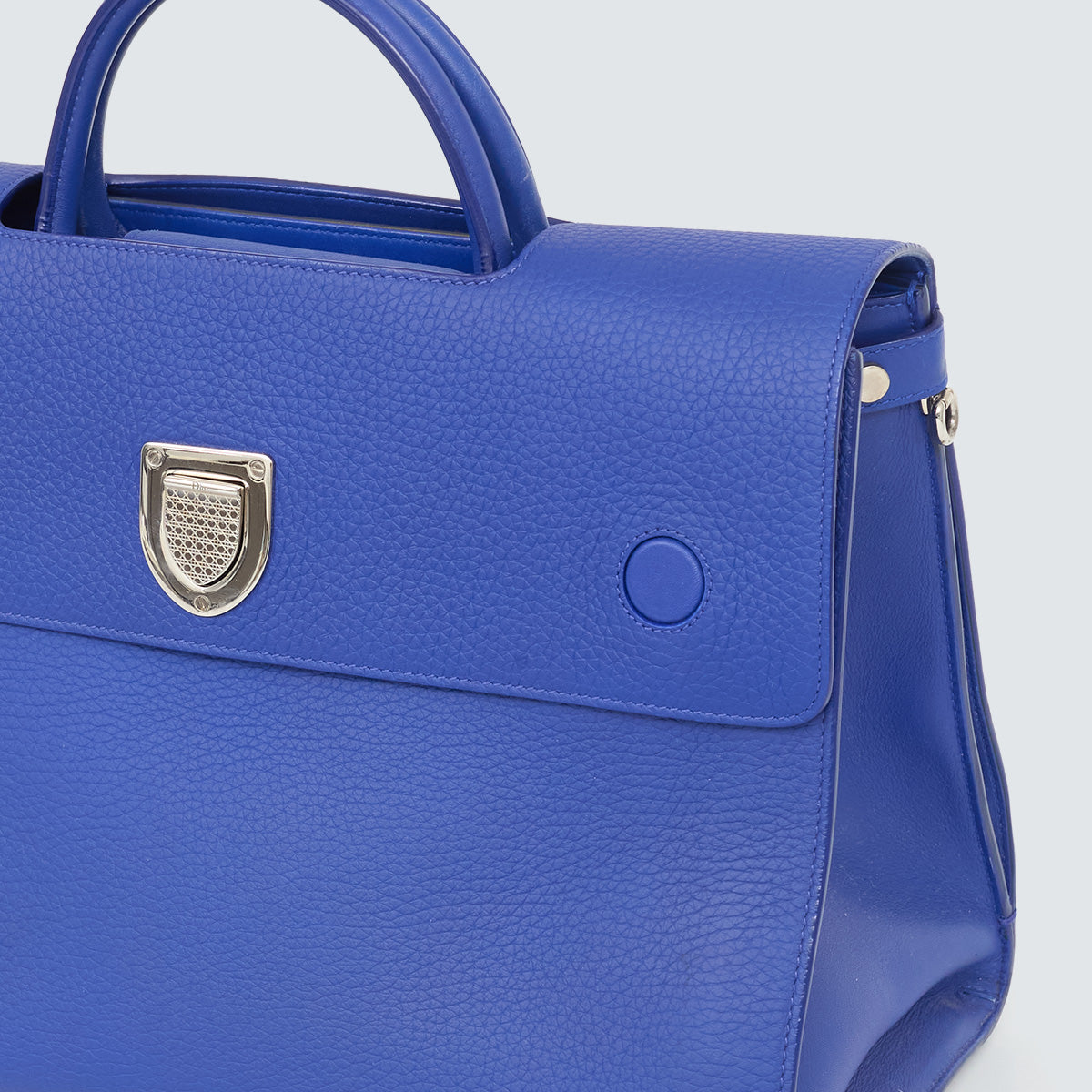 Detalhes: Bolsa Christian Dior Diorever confeccionada em couro na cor azul e ferragens prateadas. Em formato retangular, alça estruturada de mão e alça de ombro removível com mosquetões. Parte interna com uma divisória e dois bolsos. Fechamento em aba flap encaixada acima da alça de mão com detalhe em ferragem dourada triangular magnética. *Acompanha dustbag da marca*