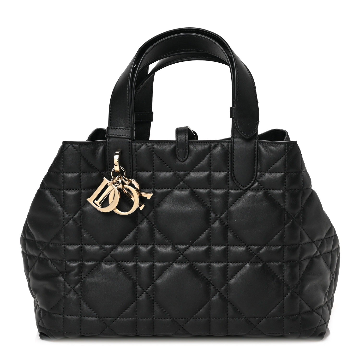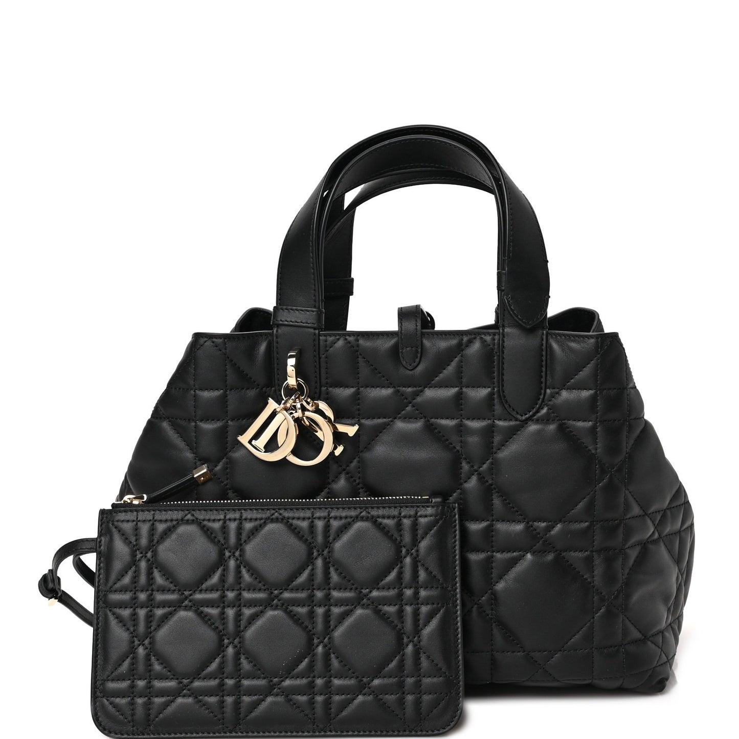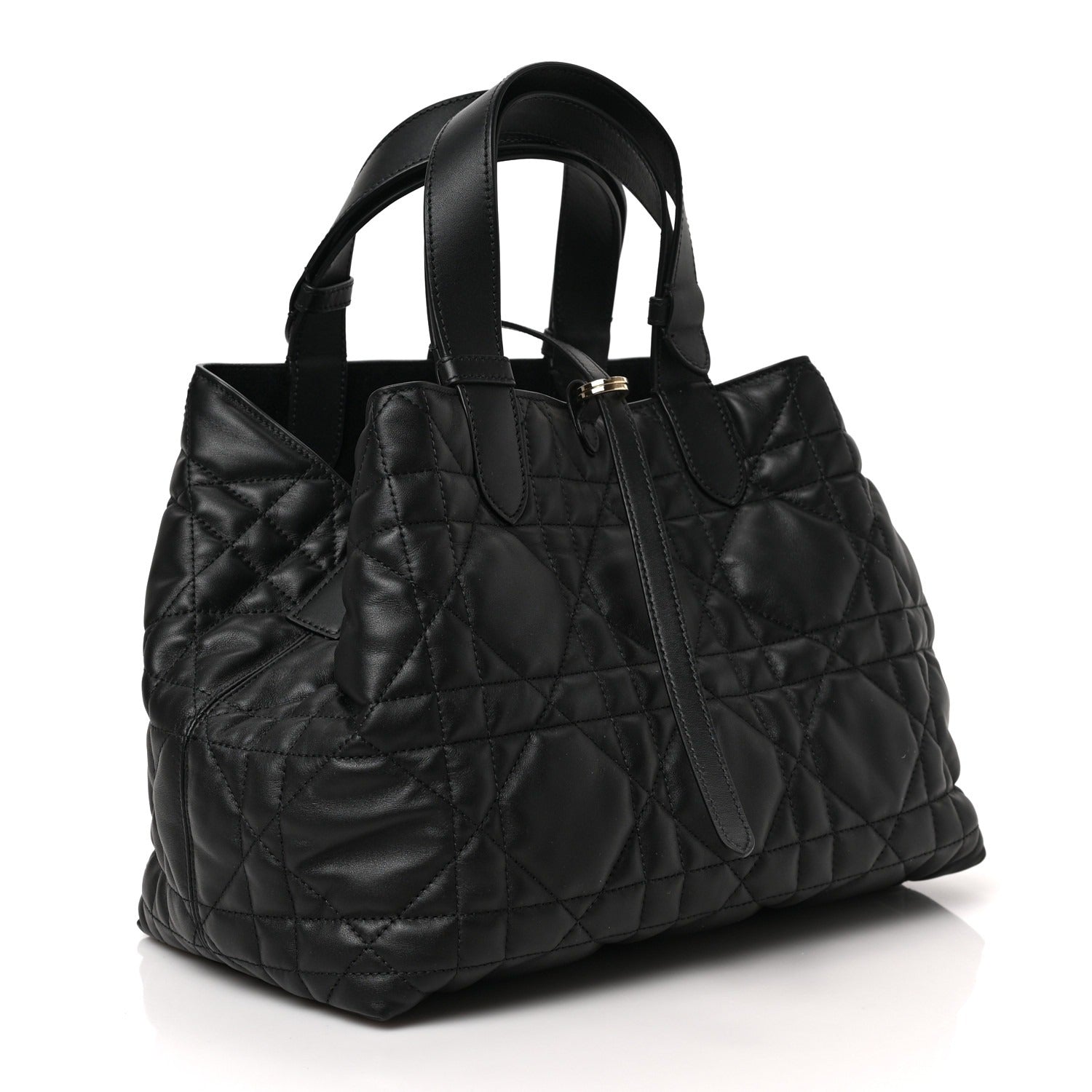 Detalhes: A Christian Dior Calfskin Macrocannage Large Toujours na cor preta é uma bolsa autêntica feita de couro de bezerro com costura Macrocannage. Possui alças ajustáveis de couro, pingentes dourados com as letras D.I.O.R. e um fecho com trava CD. O interior é de camurça preta e inclui uma bolsinha removível.