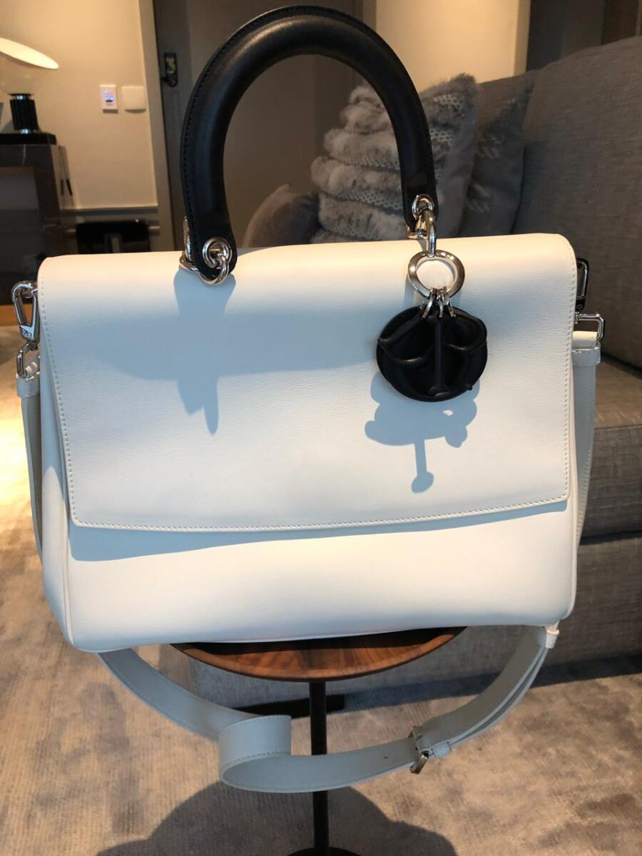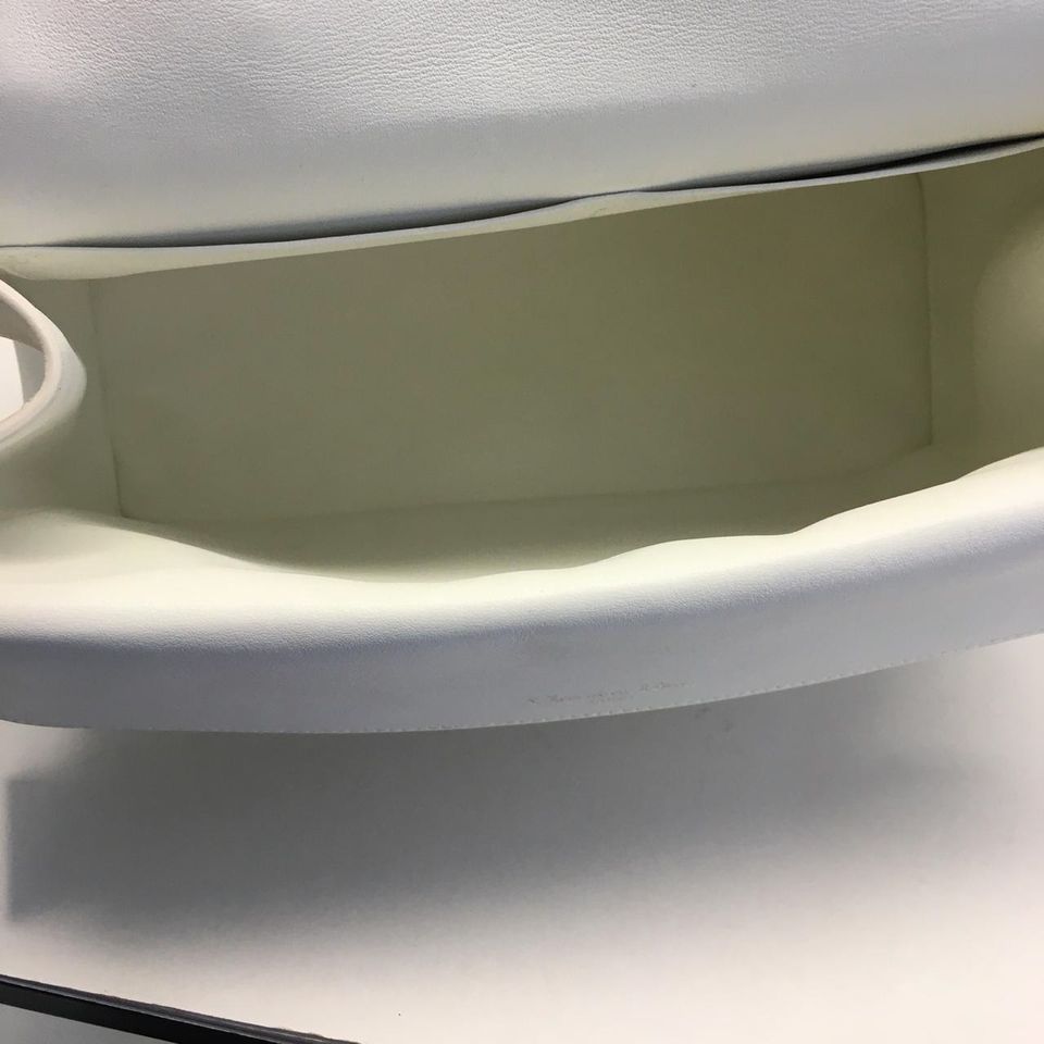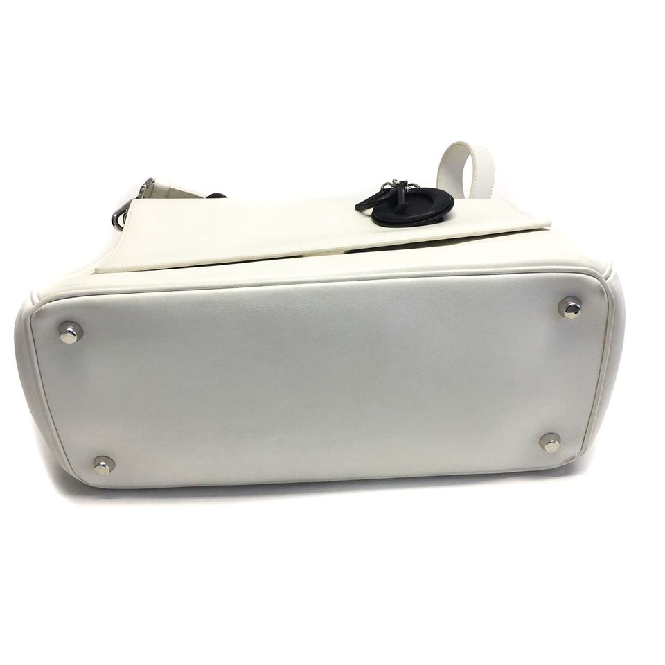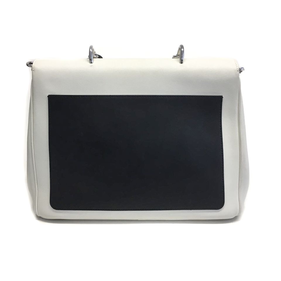 Detalhes: Bolsa branca com alça menor, parte traseira e pingente da marca em preto. Possui duas alças, sendo uma de mão e outra crossbody