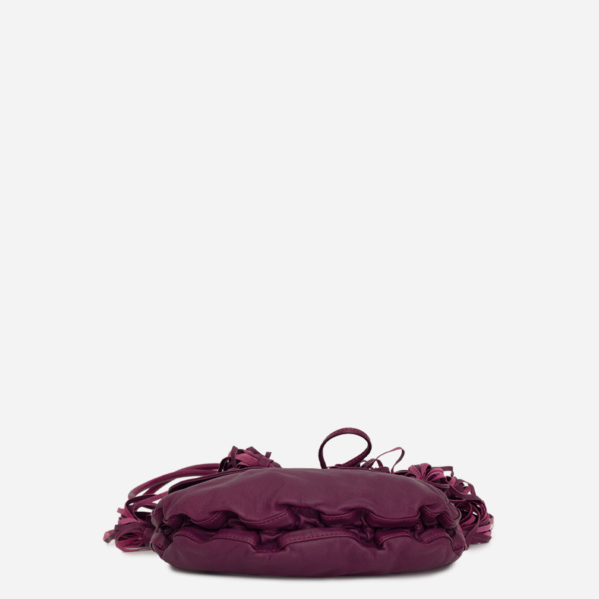Detalhes: O modelo possui alça longa com tira dupla, detalhes de franjas com ferragens em ouro envelhecido na parte externa. Dois compartimentos internos sendo um com fecho por botão com dois bolsos, sendo um com fecho em zíper.