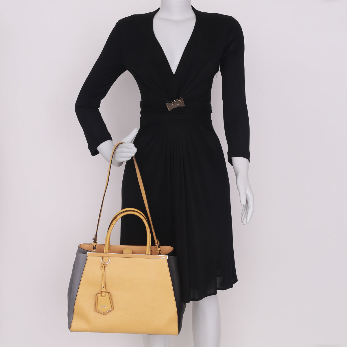 Bolsa Fendi 2Jour Amarela c/ Cinza e Preto