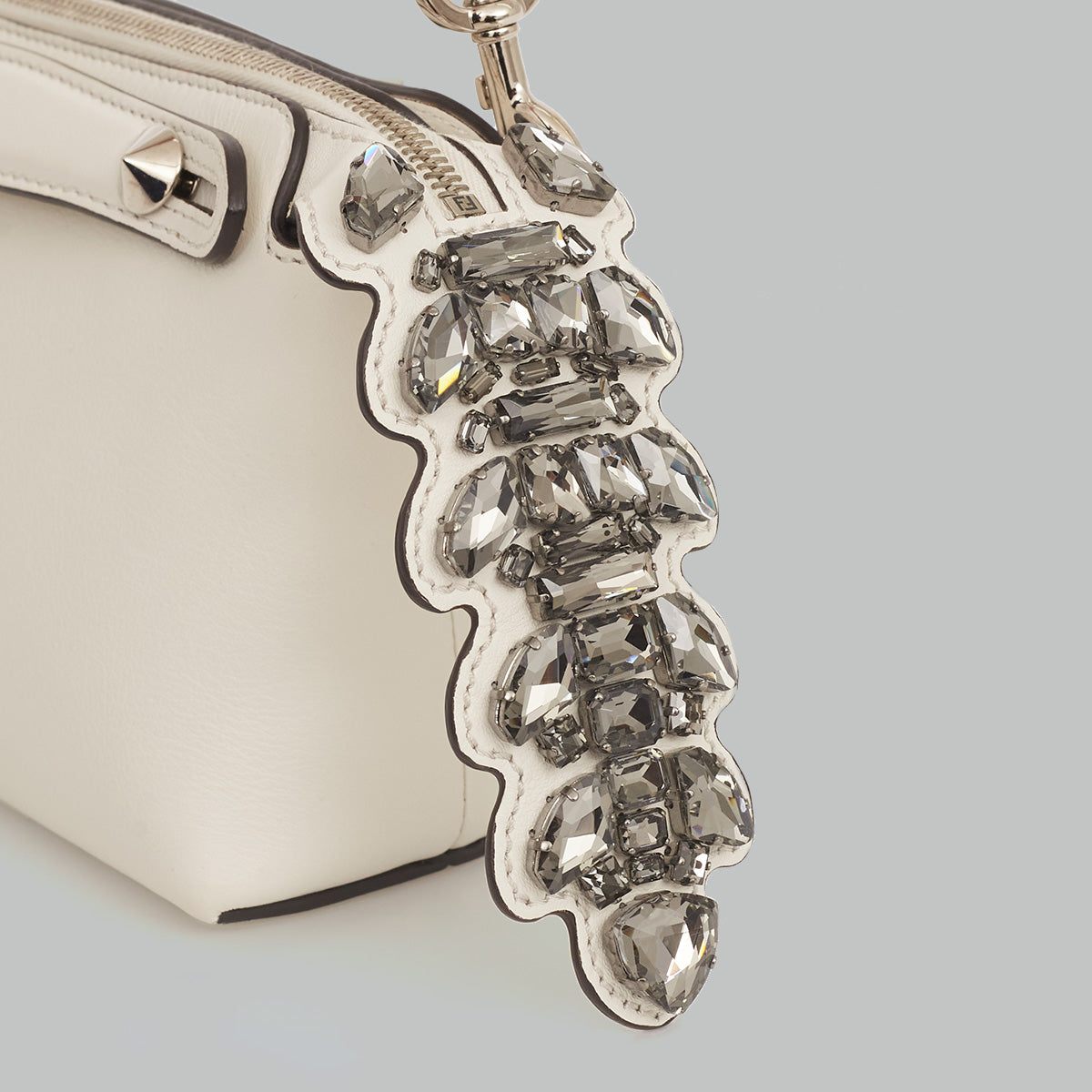 Detalhes: Bolsa Fendi By The Way confeccionada em couro na cor branca. Modelo possui alça de mão ajustável e removível por mosquetão e alça de mão dupla com detalhe de stud, tag de couro e detalhe na lateral em pedrarias. Parte interna com compartimento duplo e dois bolsos, um com fecho por zíper. Ferragens prateadas. Fechamento em zíper. *Acompanha dustbag da marca.*